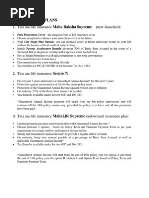 Tata Aia Life Insurance Maha Raksha Supreme Pdf Free Download